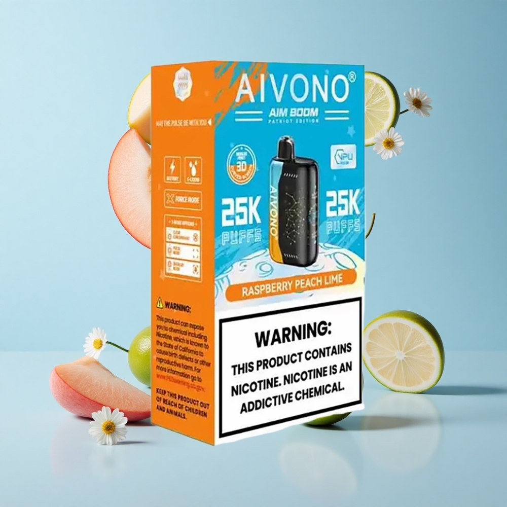 Aivono Aim Boom 25000 Puffs Bringebær Fersken Lime 28ml E-Væske Kapasitet Norway wholesale