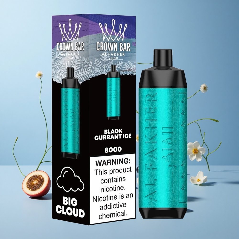 Al Fakher Crown Bar 8000 Svart Solbær Is 18ml e-Væske Kapasitet Norway wholesale